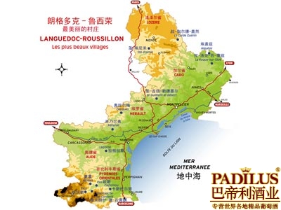 朗格多克-鲁西荣葡萄酒产区位于法国南部,临近地中海,从Rhone河延伸至Pyrenees山和西班牙。