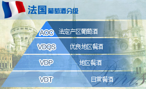 地区餐酒Vin de Pays:通常产区比AOC产区的范围大,允许栽种非传统的葡萄品种,单位产量的限制也比较宽松。地区餐酒目前占法国葡萄酒总产量的1/3以上,VDP等级让法国葡萄酒得以和新世界葡萄酒争取一席之地。2009年更名为IGP。